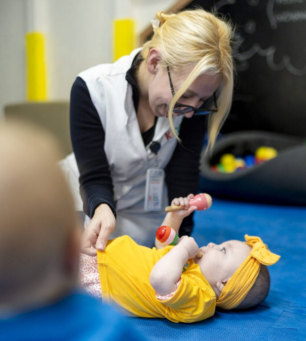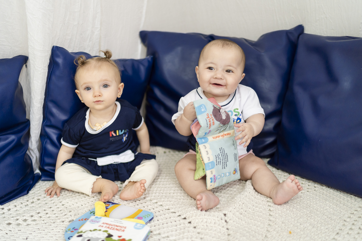 Berçário capacidade máxima 22 bebês – sendo 1 Educadora para 2 bebês (de 3 meses a 10 meses) 1 Educadora para grupos de 2 a 4 bebês (de 10 meses em diante);